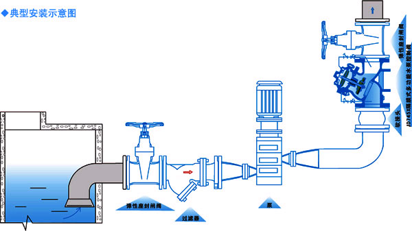 BYDS101X活塞式多功能水泵控制阀是安装在大口径给水管网系统的出口处、防止介质倒流、水锤及水击现象的智能型阀门。该阀门兼具电动阀、逆止阀和水锤消除器三种功能,可有效地提高供水系统的安全可靠性,双阀瓣结构可使阀门在停泵后迅速关闭50%(防止回流介质导致水泵反转),再缓慢关闭其余10%(消除破坏性水锤)活塞式阀门性能可靠、强度高、动作平稳,防止开泵水锤和停泵水锤的场合,只需操作水泵电机启闭按钮,阀门即可按照水泵操作规程自动实现启闭,流程大、压力损失小。